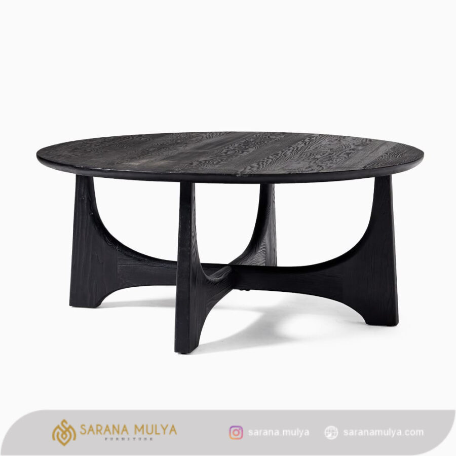 Lengkapi ruang tamu hunian maupun kantor Anda dengan Meja Tamu Bulat Kayu Jati. Memiliki desain minimalis yang menarik dengan sentuhan warna hitam yang akan menjadikannya elegan di ruangan. Meja coffe table ini terbuat dari material kayu jati solid berkualitas dengan hasil akhir finishing rustic yang indah, menjadikan coffee table ini kuat, kokoh dan juga awet untuk penggunaan jangka panjang.