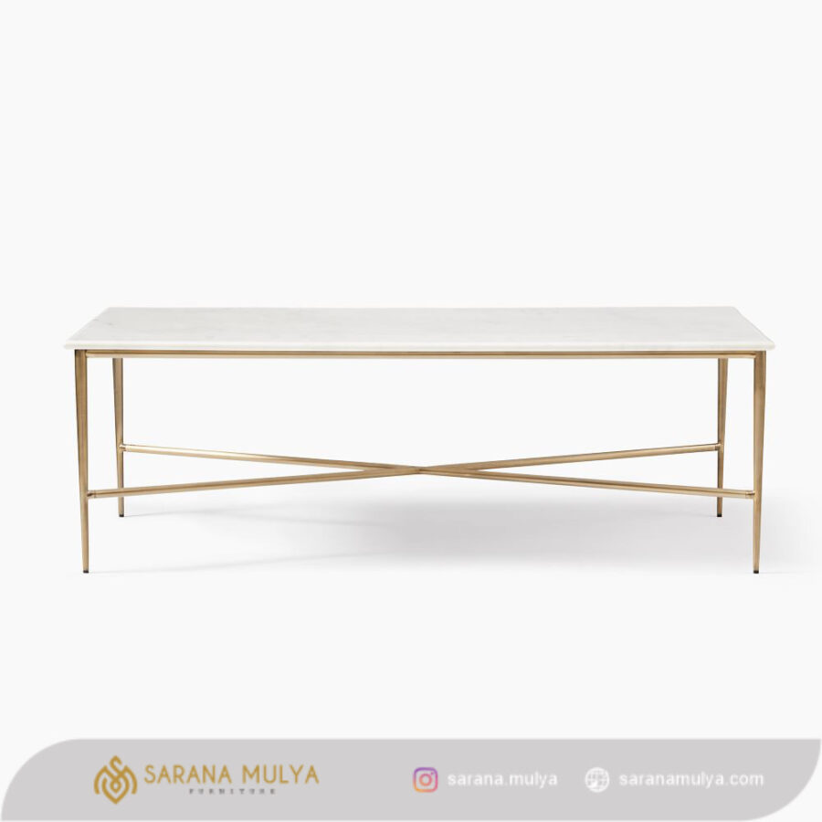 Hadirkan Meja Tamu Marmer Rangka Besi Minimalis agar penataan ruang tamu akan semakin lengkap. Selain mempercantik dekorasi ruangan, meja tamu ini juga bisa digunakan untuk tempat menaruh hidangan bagi teman maupun kerabat dekat yang datang berkunjung. Cocok untuk ruang tamu bernuansa minimalis modern. Terbuat dari material rangka besi berkualitas kombinasi top marmer dengan hasil akhir finishing halus yang sempurna, menjadikannya kuat, kokoh dan juga awet untuk penggunaan jangka panjang.