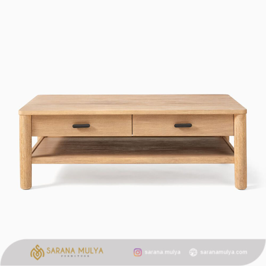 Jadikan Meja Tamu Natural Kayu Jati Solid sebagai dekorasi pada ruang tamu hunian maupun kantor Anda. Memiliki desain minimalis yang menarik dengan sentuhan warna natural yang akan menjadikannya mudah dipadukan dengan berbagai aksen dekorasi di ruangan. Meja coffe table ini terbuat dari material kayu jati solid berkualitas dengan hasil akhir finishing halus yang indah, menjadikan coffee table ini kuat, kokoh dan juga awet untuk penggunaan jangka panjang. Terdapat juga rak terbuka dan 2 laci penyimpanan untuk menyimpan barang-barang seperti buku, koran, majalah dan lainnya.