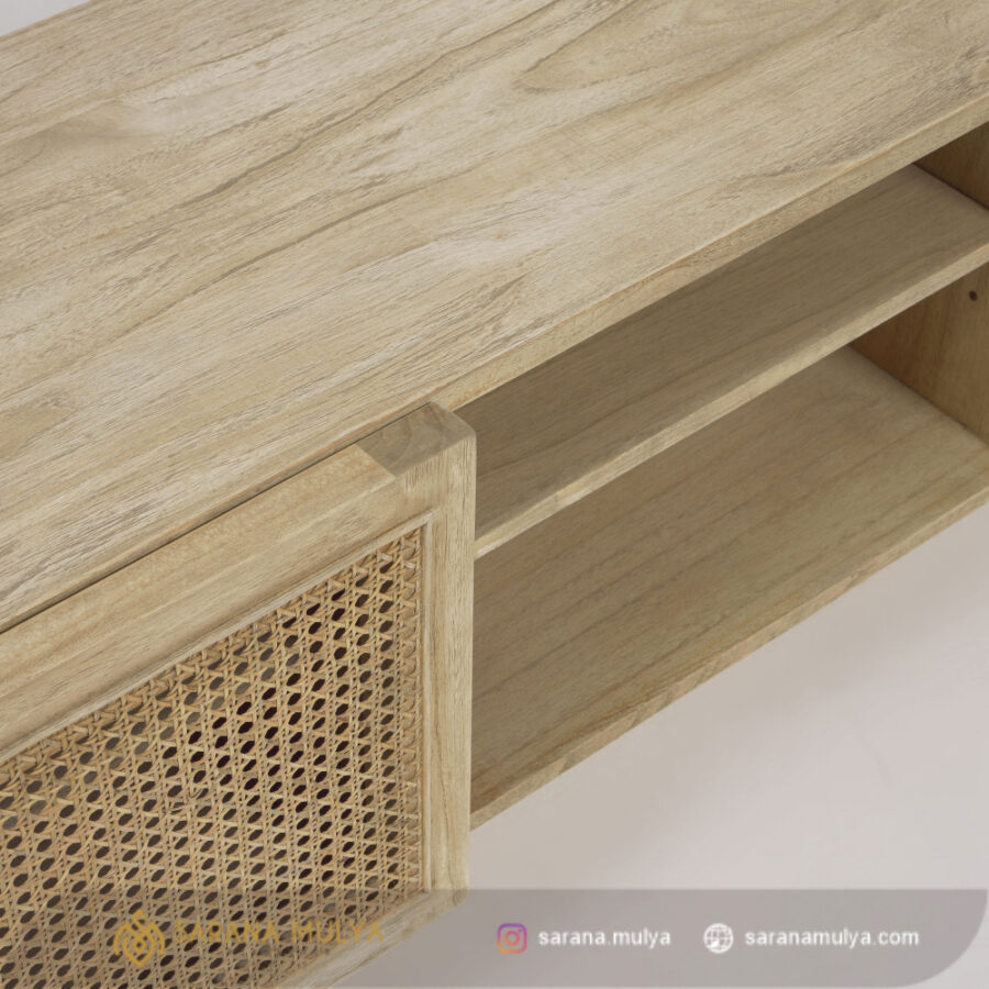 Meja Tv Jati Natural Rotan