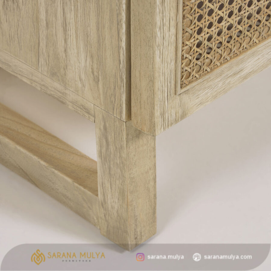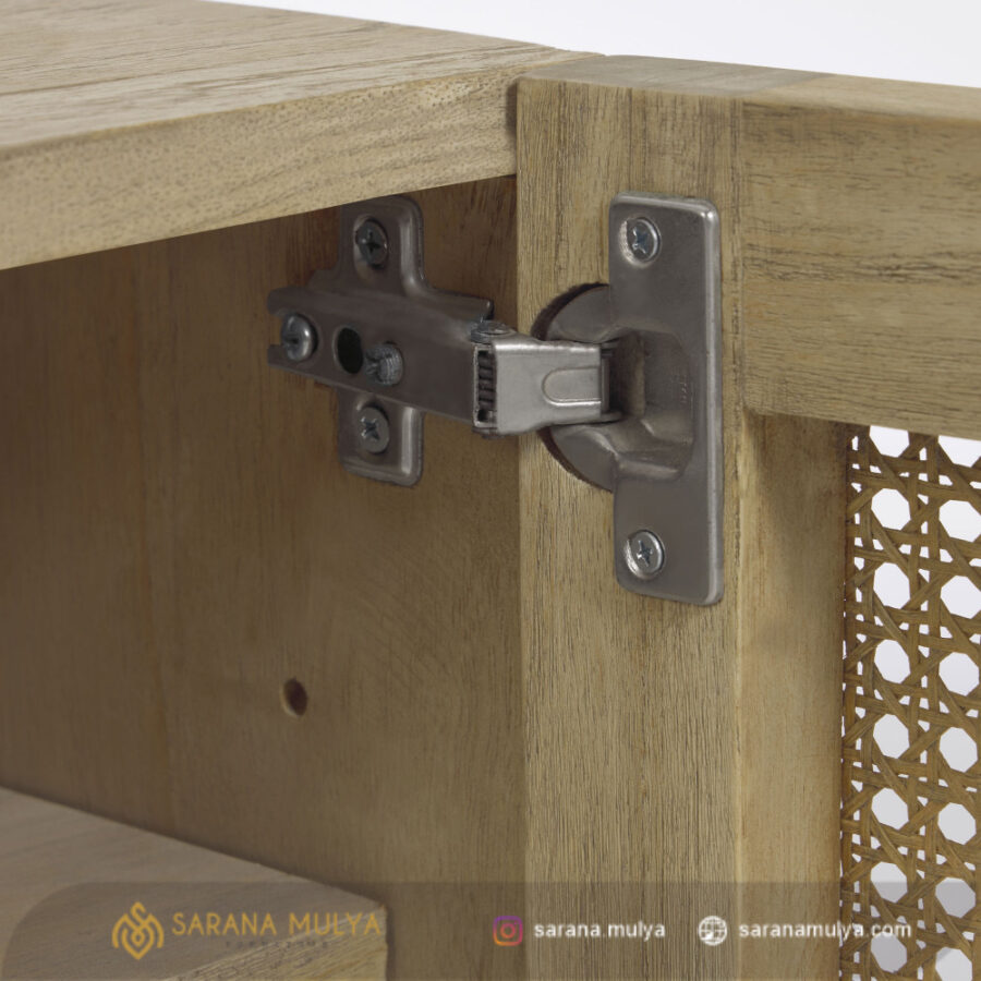 Hadirkan Meja Tv Jati Natural Rotan ini yang dapat Anda letakkan di ruang keluarga untuk membuat waktu menonton bersama keluarga lebih terasa menyenangkan dan nyaman. Dengan desain minimalis modern rak Tv ini terbuat dari material kayu jati solid kombinasi rotan alami berkualitas sehingga menghasilkan konstruksi kuat dan kokoh untuk dapat menahan beban dengan baik. Tidak hanya untuk menaruh TV, meja Tv ini juga sudah dilengkapi dengan 3 pintu dan rak penyimpanan terbuka yang dapat menjaga barang di dalamnya agar tidak terkena debu dan kotoran.