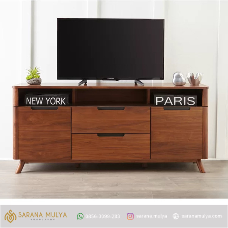 Meja Tv Jati Retro Minimalis merupakan pilihan yang tepat untuk anda yang menyukai gaya minimalis di rumah kesayangan anda, produk ini bisa menjadi Sahabat terbaik untuk ruang tamu dan ruang hiburan anda, desain elegan akan menghiasi rumah Anda dengan sempurna, menampilkan material kayu jati solid dengan finishing semi glossy warna brown teak. Sementara itu, produk meja tv ini memiliki tempat penyimpanan terbuka, dua pintu dan dua laci lengkap dengan lubang manajemen kabel.