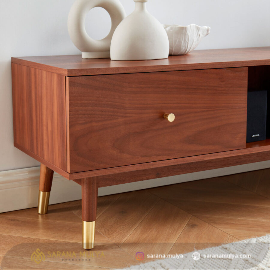 Untuk membuat waktu menonton bersama keluarga lebih terasa menyenangkan dan nyaman di ruang keluarga hadirkan Meja Tv Jati Terbaru Minimalis. Dengan desain minimalis modern rak Tv ini terbuat dari material kayu jati solid kombinasi kaki besi berkualitas sehingga menghasilkan konstruksi kuat dan kokoh untuk dapat menahan beban dengan baik. Tidak hanya untuk menaruh TV, meja Tv ini juga sudah dilengkapi dengan rak terbuka dan 2 laci penyimpanan yang dapat menjaga barang di dalamnya agar tidak terkena debu dan kotoran.