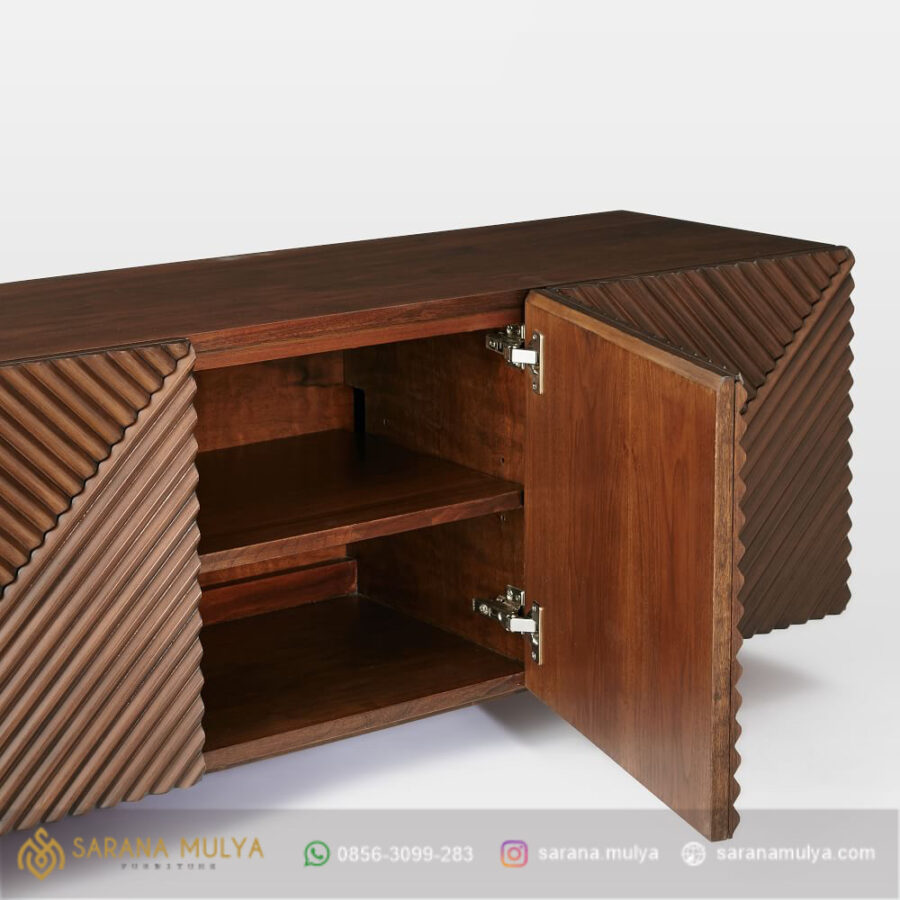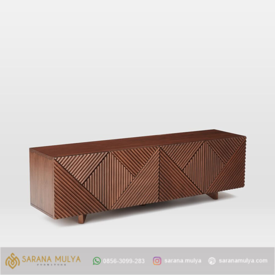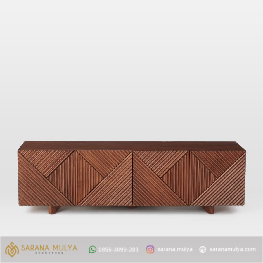 Meja Tv Kayu Minimalis Mewah dengan desain yang unik, bernuansa minimalis mewah. Meja ini digunakan sebagai tempat TV, game konsol dan dvd player sekaligus menyimpan perlengkapan hiburan lainnya. Berbahan kayu jati solid kering dengan finising semi glossy brown serta penyangga kaki yang ramping dapat menjamin kualitas produk ini yang tidak perlu diragukan lagi, Meja tv ini dilengkapi 4 pintu penyimpanan untuk barang-barang yang cukup luas. Menikmati hiburan dari televisi bersama keluarga memang sangat nyaman dan menyenangkan. Tapi, akan lebih nyaman jika memiliki meja TV dengan ukuran yang sesuai dengan ruang tamu anda.