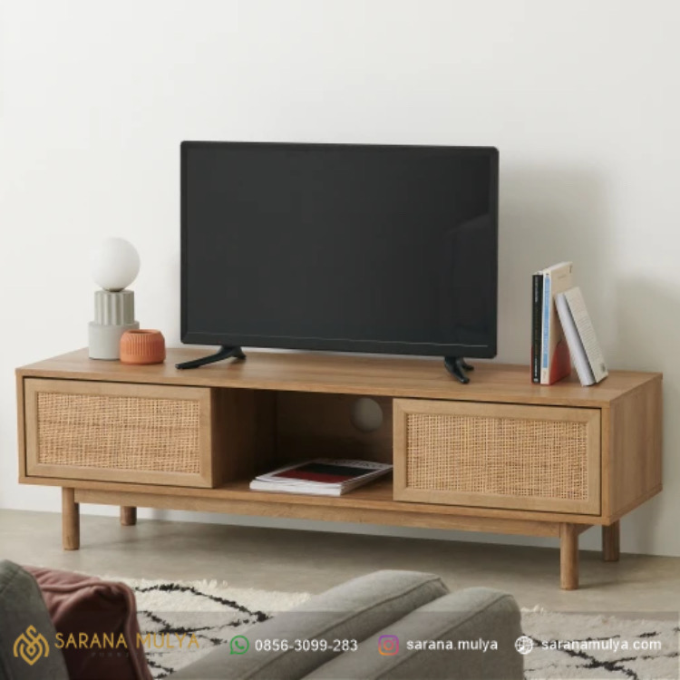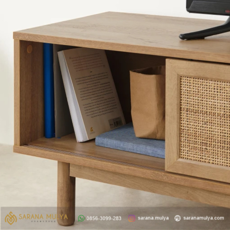 Fitur Meja Tv Kayu Rotan Pintu Sliding :