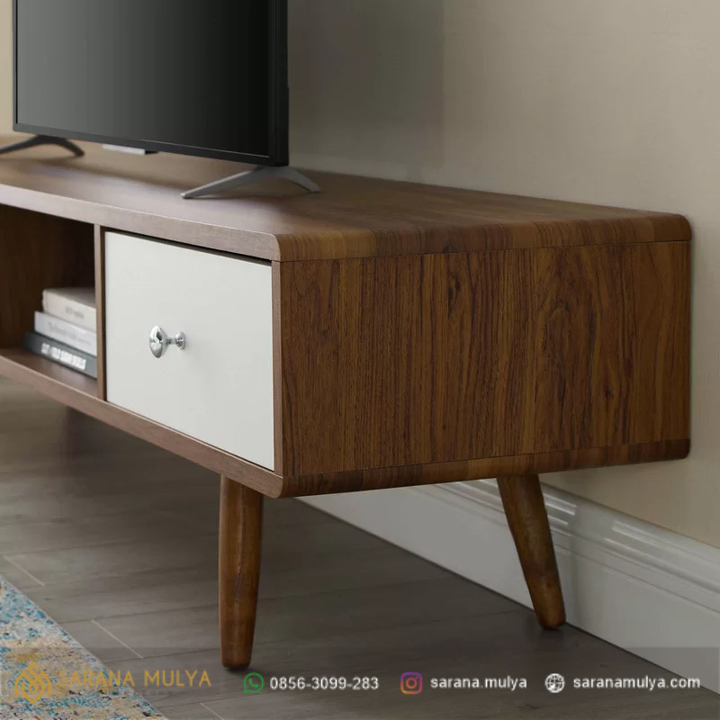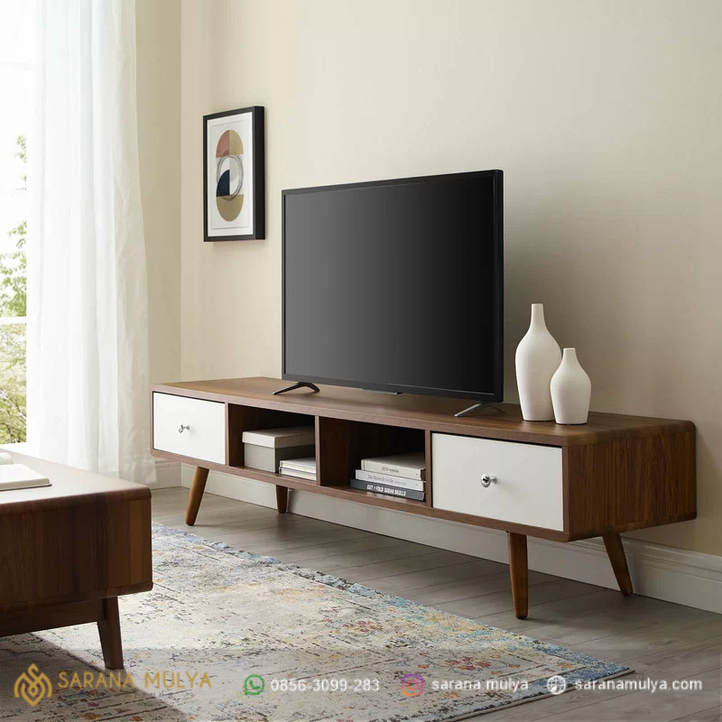 Kami Menghadirkan Meja Tv Modern Retro Minimalis untuk anda yang mengutamakan fungsi namun tetap mengedepankan estetika dengan desainnya yang klasik. Terbuat dari kayu jati solid kering kombinasi kayu mahoni dengan hasil akhir warna yang cantik, material yang berkualitas dan memiliki desain klasik modern yang mampu di padupadankan dengan furniture ruang keluarga anda. Rak TV Minimalis ini memiliki tempat penyimpanan terbuka dan 2 laci yang dapat digunakan untuk meletakkan aksesoris dan perlengkapan hiburan. Segera miliki produk ini dengan harga spesial dari Sarana Mulya.