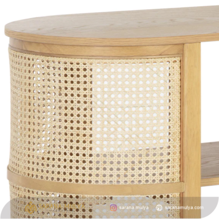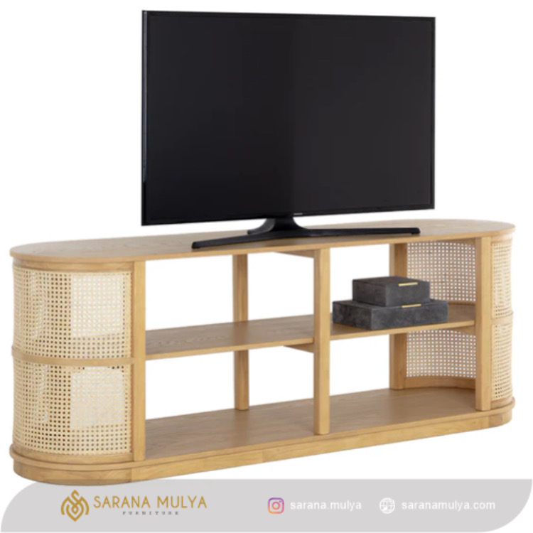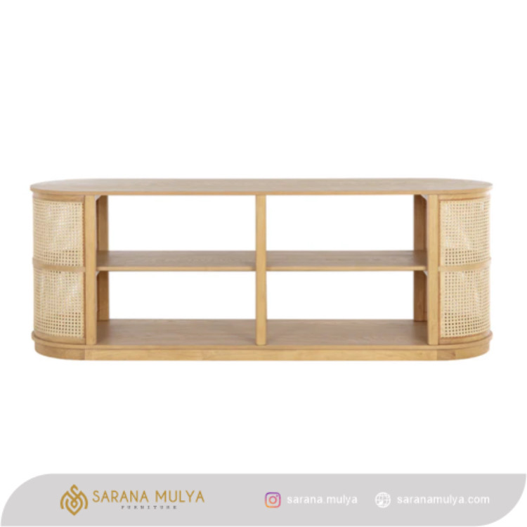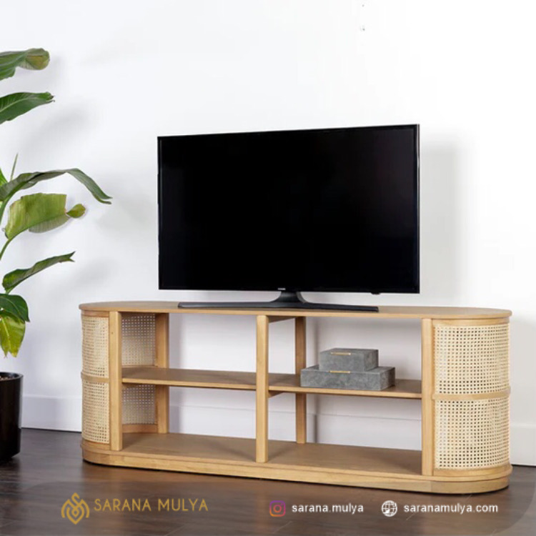Hiasi ruang keluarga Anda dengan menghadirkan Meja Tv Rotan Kayu Minimalis. Memiliki desain modern dan elegan sehingga dapat mempercantik tampilan ruangan Anda. Selain itu, rak TV ini juga dibuat dari material Terbuat dari material kayu jati solid kombinasi anyaman rotan alami berkualitas yang kuat sehingga menghasilkan konstruksi kokoh untuk dapat menahan beban TV dengan baik. Dilengkapi 2 rak penyimpanan terbuka untuk menyimpan berbagai barang-barang Anda seperti DVD player, game konsol, remote, hingga buku dan majalah.