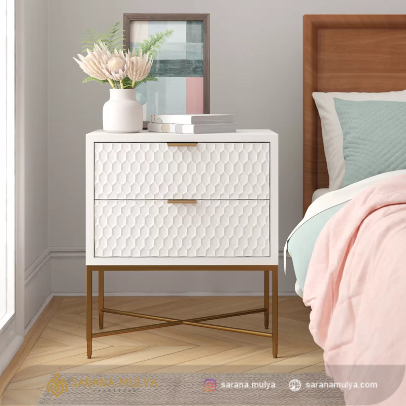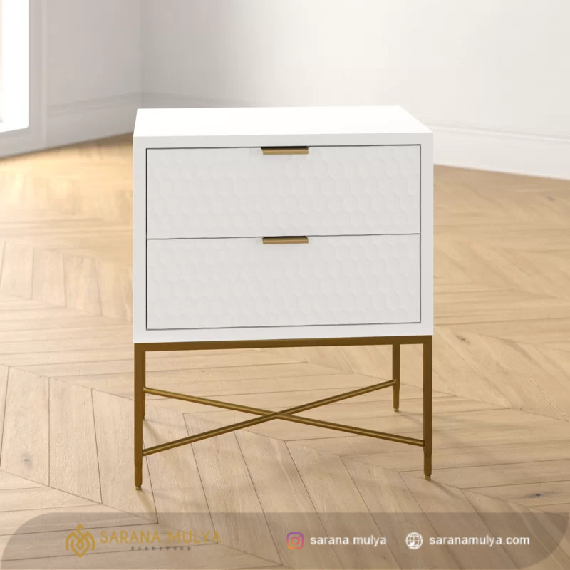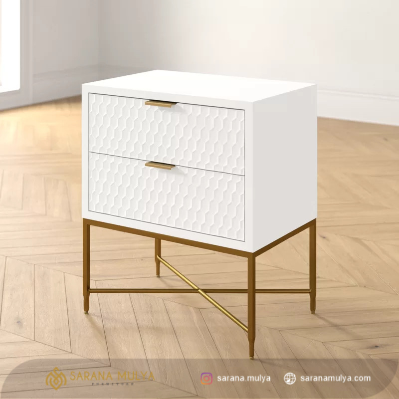 Nakas Kayu Kaki Besi Modern Unik sangat cocok untuk Anda diletakkan pada ruang tidur, namun juga dapat Anda ditempatkan di ruang lain sesuai kebutuhan. Dengan desain minimalis modern di tambah 2 laci untuk ruang penyimpanan kebutuhan Anda. Lalu, bagian atas dari meja nakas ini dapat Anda gunakan untuk meletakkan pernak-pernik, jam weker ataupun smartphone agar mudah di jangkau. Merawatnya pun mudah karena nakas minimalis ini terbuat dari material kayu mahoni yang kuat dan kokoh kombinasi kaki kaki besi dengan hasil akhir finishing yang mewah. Nakas ini merupakan meja sisi tempat tidur yang berguna untuk menyimpan berbagai aksesoris dan barang berharga Anda.