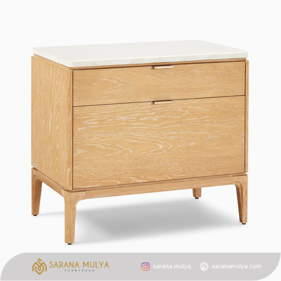 Nakas Marmer Kayu Jati Minimalis hadir dalam desain modern dengan dibalut perpaduan warna yang elegan sehingga dapat mempercantik tampilan kamar tidur Anda dengan sempurna. Terbuat dari material kayu jati solid berkualitas kombinasi top marmer dengan jaminan konstruksi kokoh serta awet untuk penggunaan jangka waktu yang lama. Selain itu, meja nakas ini juga dilengkapi 2 buah laci penyimpanan untuk menyimpan barang penting Anda seperti ponsel, dompet, buku, maupun produk perawatan wajah. Cocok untuk Anda letakkan di samping tempat tidur agar memudahkan Anda saat ingin mengambil barang tanpa perlu beranjak dari tempat tidur.