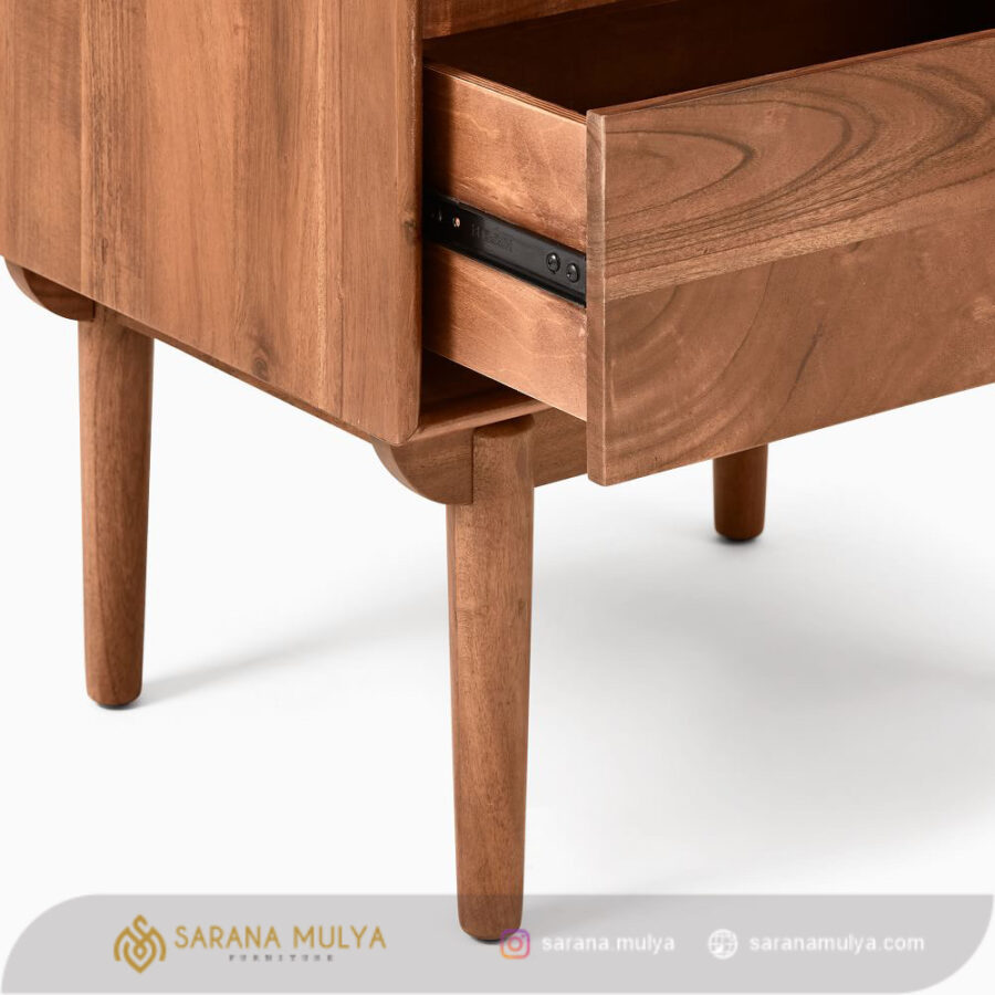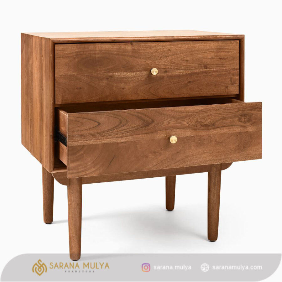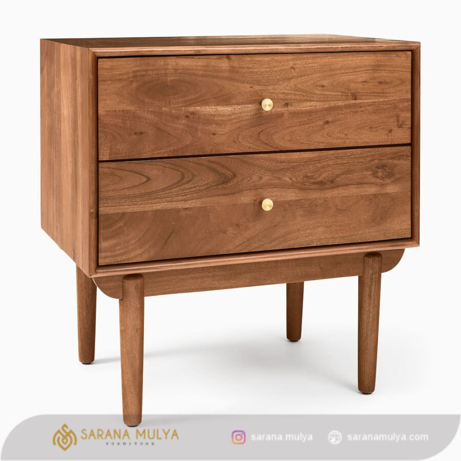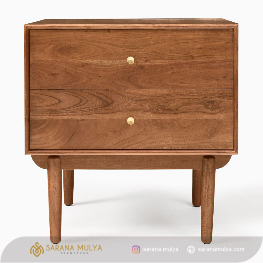 agar memudahkan Anda saat ingin mengambil barang pribadi seperti ponsel, dompet maupun buku tanpa perlu beranjak dari tempat tidur letakkan Nakas Retro Terbaru Kayu Minimalis ini. Hadir dalam desain minimalis elegan sehingga dapat mempercantik tampilan kamar tidur Anda dengan sempurna. Selain itu, meja nakas ini juga dilengkapi 2 buah laci penyimpanan. Terbuat dari material kayu jati solid berkualitas, serta memiliki kontruksi kuat dan kokoh yang membuat meja nakas ini dapat berdiri dengan stabil.