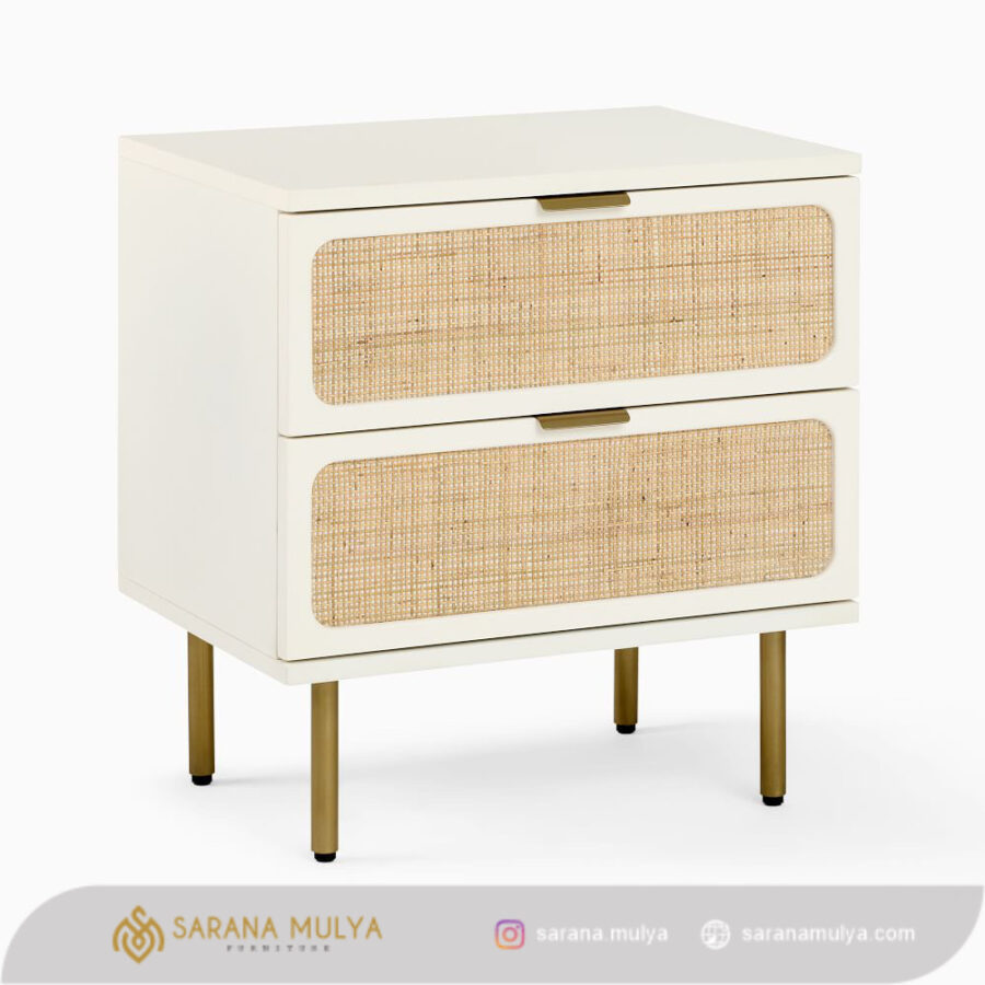 Selain sebagai furnitur pelengkap Nakas Rotan Kayu Putih Minimalis ini juga memiliki fungsi sebagai tempat penyimpanan tambahan. Dengan desain minimalis elegan dan menawan yang cocok digunakan pada ruangan bergaya modern. Selain itu, meja nakas ini juga dilengkapi dengan 2 buah laci penyimpanan untuk menyimpan barang kesayangan Anda. Terbuat dari material kayu mahoni kombinasi anyaman rotan alami dan juga kaki besi berkualitas akan menjamin unit ini memiliki konstruksi yang kokoh serta awet untuk penggunaan jangka panjang. Segera lengkapi koleksi furnitur Anda dengan Nakas ini sekarang juga!