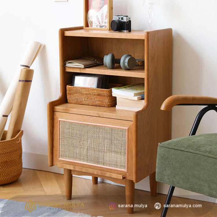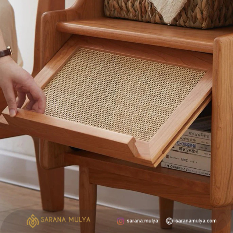 Hadirkan Nakas Rotan Terbaru Kayu Jati Minimalis untuk menyempurnakan tampilan kamar tidur Anda. Hadir dengan desain minimalis dan juga modern yang akan menambah nilai estetika di hunian Anda. Selain itu, meja nakas ini juga dilengkapi laci dan rak penyimpanan untuk menyimpan barang berharga Anda seperti ponsel, dompet, maupun buku. Terbuat dari material kayu jati solid berkualitas kombinasi rotan alami dengan konstruksi kokoh dan juga kuat serta awet untuk penggunaan jangka panjang. Sangat cocok diletakkan di samping tempat tidur maupun di samping sofa dengan lampu meja dan juga dekorasi tambahan di atasnya.