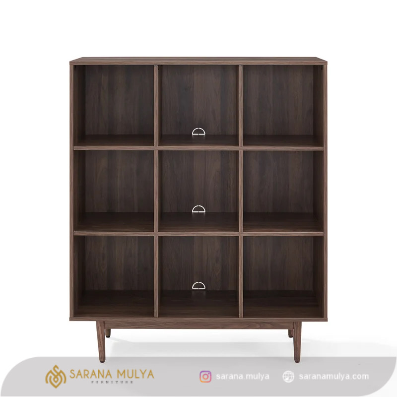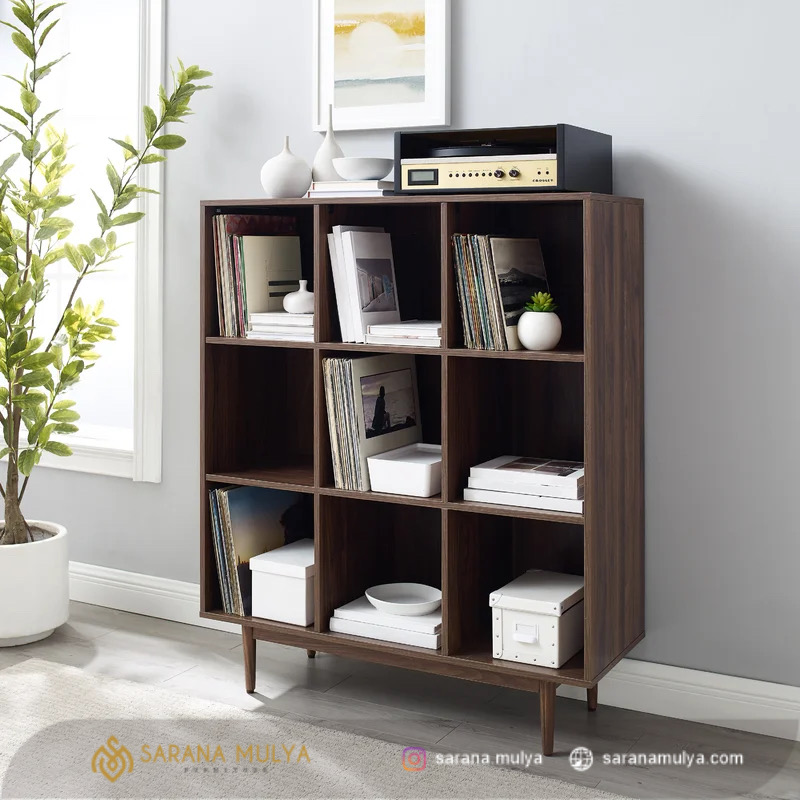 Koleksi buku kesayangan Anda kini dapat tertata rapi di Rak Buku Minimalis Retro Kayu Jati. Tersedia 9 rak terbuka ukuran dan penyimpanan tertutup di bagian bawahnya untuk tempat menyimpan buku, dokumen, album foto, majalah atau memajang hiasan lainya. Terbuat dari material kayu Jati solid berkualitas dan hasil akhir finishing warna walnut yang halus. Dengan kontruksi yang kuat menjadikan rak buku ini memiliki daya tahan yang sangat baik. Tidak hanya berfungsi sebagai rak, produk rak buku ini juga bisa Anda manfaatkan sebagai sekat atau pemisah antar ruangan. Hadir dengan desain minimalis modern menjadikan Rak Buku ini cocok untuk melengkapi berbagai gaya dekorasi ruangan Anda.