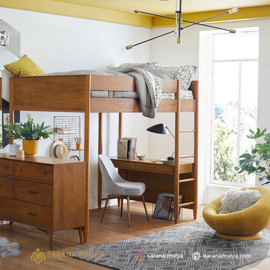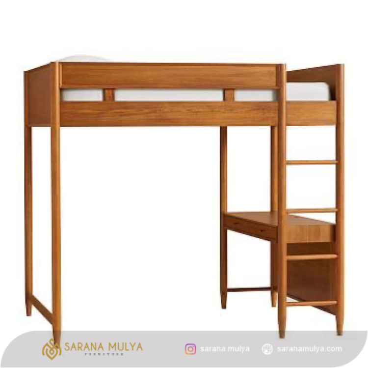 Ranjang Tingkat Anak Multifungsi Minimalis Jati persembahan dari saranamulya.com ini merupakan salah satu solusi yang tepat untuk kamar tidur Anak di hunian minimalis ataupun apartemen. Terdiri dari 1 tempat tidur dengan tangga yang simple yang dapat mempermudah penggunaannya. Dilengkapi juga dengan meja untuk belajar dan meja laci penyimpanan yang dapat menghemat ruangan pada kamar tidur. Ranjang Tingkat Anak Multifungsi Minimalis Jati ini terbuat dari material kayu jati solid berkualitas yang kuat, stabil dan tentunya tahan lama. Cocok sekali untuk penggunaan pada apartemen atau asrama.