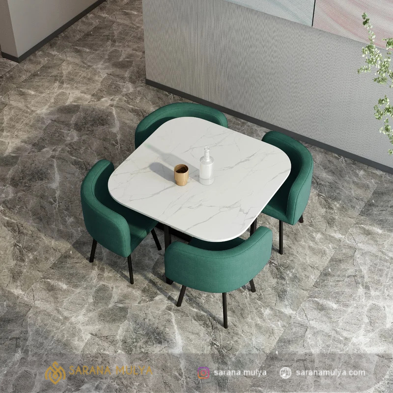 Fitur Set Kursi Cafe Fabric Top Marmer Minimalis :