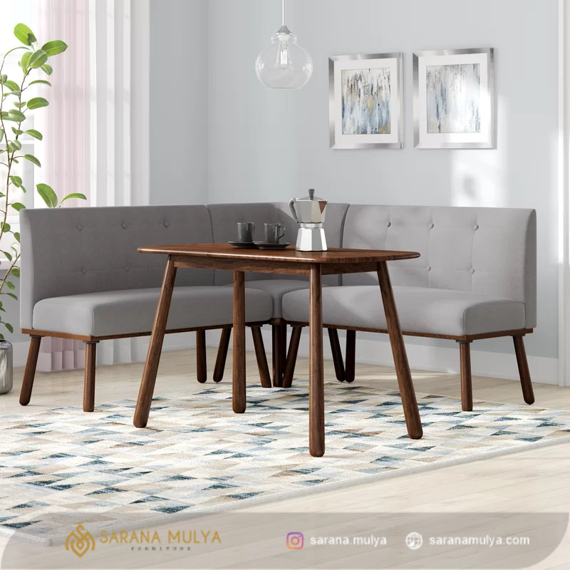 Set Kursi Cafe Sofa Minimalis Kayu Jati merupakan pilihan ideal untuk melengkapi kenyamanan ruang makan maupun kebutuhan usaha seperti kafe, restoran maupun hotel. Dengan desain minimalis modern bernuansa warna cokelat pada set kursi cafe ini akan membuat tampilan interior lebih hidup dan menyenangkan. Kayu jati solid berkualitas dan busa empuk berlapis kain fabric menjadi material pembuatan set kursi cafe dengan konstruksi kuat dan tentunya lebih tahan lama. Cocok digunakan untuk kebutuhan rumah tangga hingga kafe, restoran atau hotel.