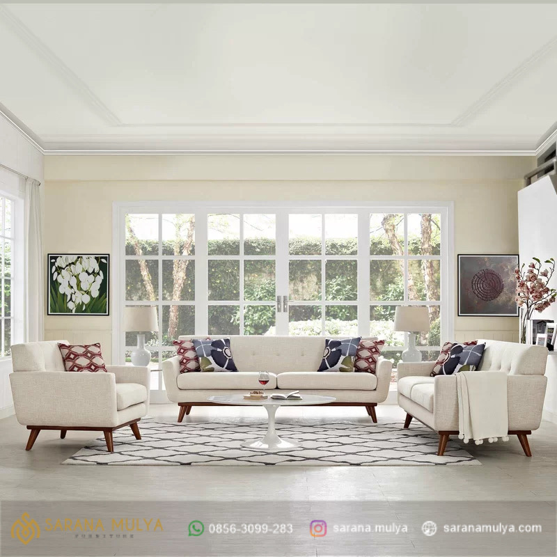 Set Kursi Tamu Sofa Minimalis Jati ini siap untuk menghiasi ruang tamu Anda dengan daya tarik modern yang mewah, Dibangun dari kerangka kayu jati solid untuk kekuatan dan daya tahan jangka panjang, set sofa bergaya abad pertengahan yang terinspirasi modern ini menghadirkan pelengkap bagi ruang tamu anda dengan gaya mewah, bantal busa berlapis kain frabic untuk kenyamanan dan penampilan hasil akhir yang mewah, kenyamanan maksimal khusus untuk membangun suasana bersantai dengan keluarga mapun menerima tamu agar lebih hangat.