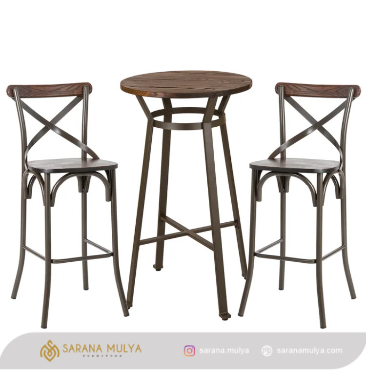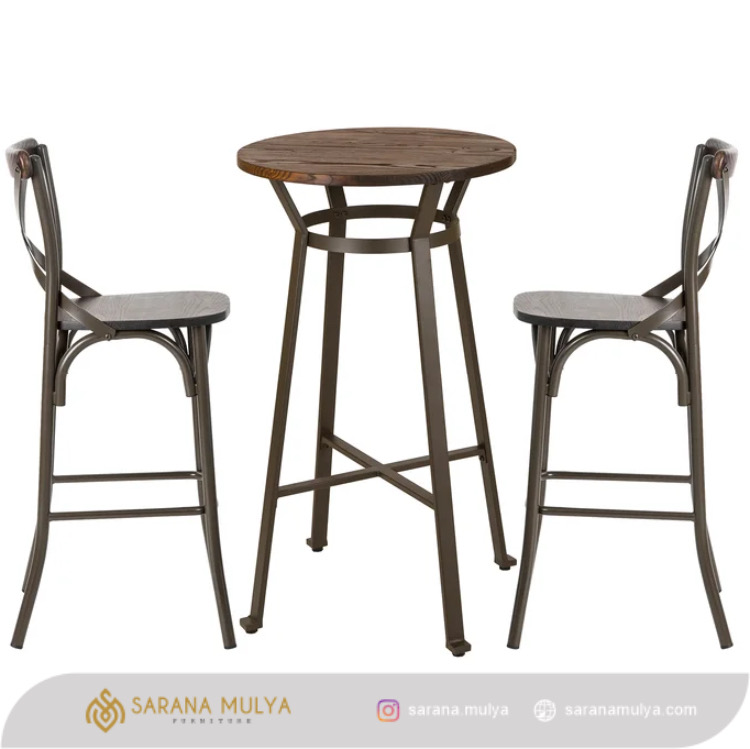 Fitur Set Meja Bar Besi Kayu Koboy :