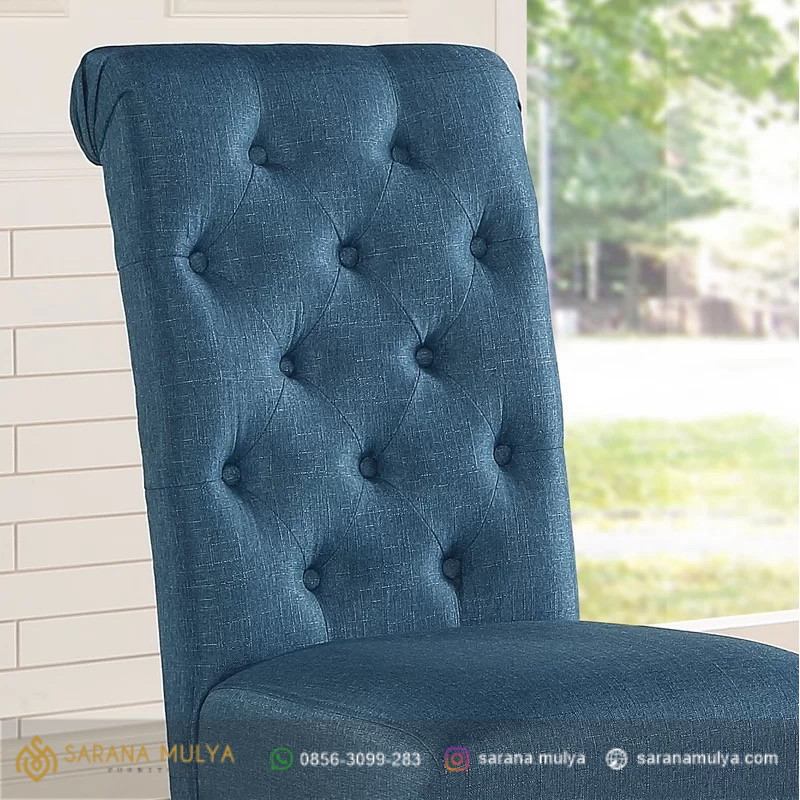Set Meja Makan Mewah Jok Biru – Ruang makan beserta meja makan minimalis merupakan  waktu di mana Anda sekeluarga bersantap bersama dan mendapatkan quality time yang efektif. Dibuat oleh pengrajin kami yang sudah ahli dan berpengalaman dengan hasil akhir memiliki kualitas terbaik, Pada bagian meja berbahan kayu jati dengan desain kaki kaki kuat, sementara untuk kursinya memiliki bentuk yang mewah dengan Jok pada bagian dudukan dan sandaran.