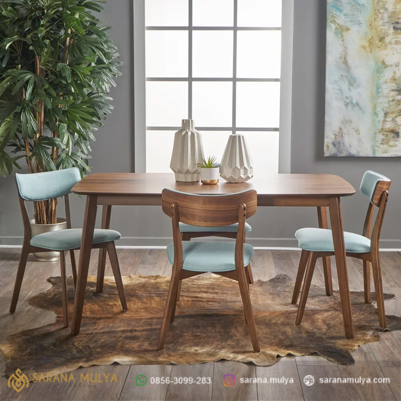 pilihan tepat bagi anda yang ingin ruang makan tetap terlihat simple tanpa mengorbankan kualitas yaitu dengan meminang Set Meja Makan Retro Kayu Jati, di desain khusus untuk membangun suasana makan bersama keluarga agar lebih hangat. Keindahan meja ini datang dari bentuknya kursinya yang klasik kekinian, meja ini dikemas dalam material kayu jati dengan Kaki kokohnya yang solid, sementara kursi makan nya didapat dari material kayu solidn. Supaya waktu bersantap terasa nyaman, sandaran dan dudukannya memiliki busa empuk berlapis kain.