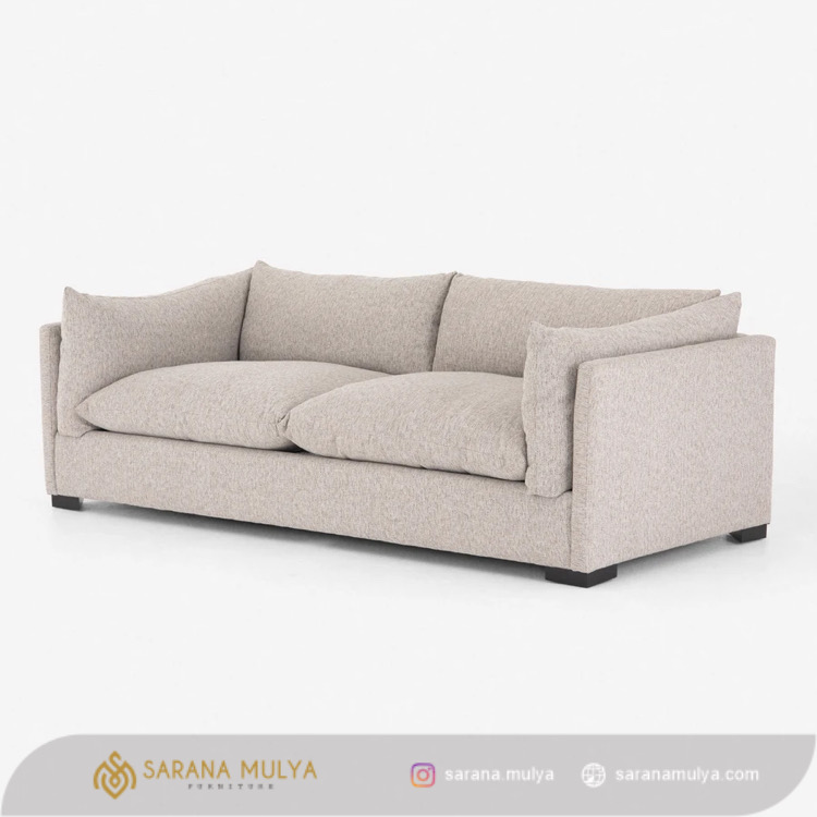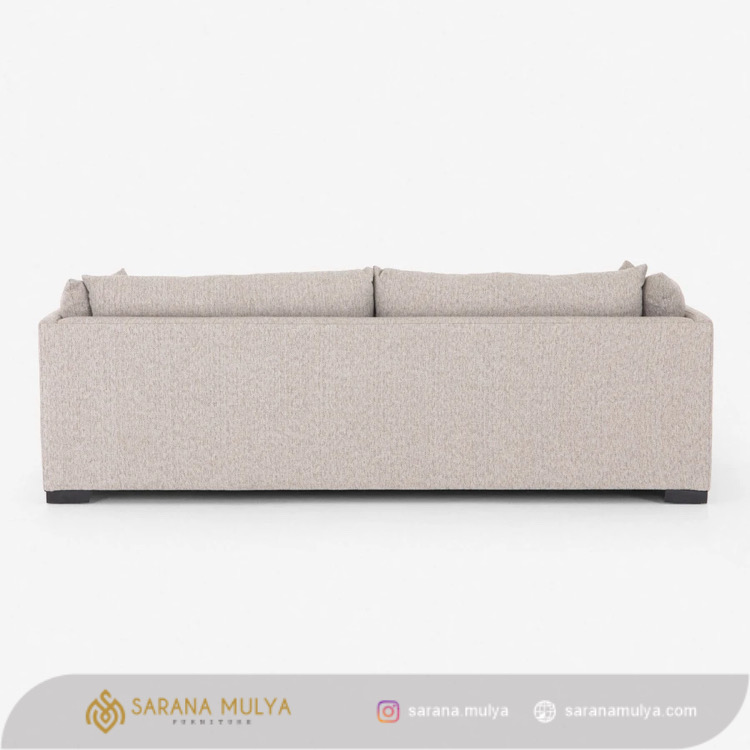 Sofa Tamu Modern 3 Dudukan Burrow merupakan pilihan yang tepat untuk mengisi ruang tamu ataupun ruang keluarga Anda. Memiliki dudukan yang empuk dan juga termasuk di bagian penopang tangan. Kursi Sofa ini cocok digunakan untuk bersantai bersama keluarga maupun teman yang berkunjung ke rumah. Desain yang modern, membuat sofa ini mudah untuk dipadukan dengan furnitur lainnya. Rangka kursi sofa 3 dudukan ini terbuat dari material kayu jati solid pilihan yang memiliki konstruksi kuat, kokoh dan tentunya tahan lama. Selain itu, jok dengan busa yang tebal berlapis kain fabric warna cream berkualitas ini memberikan kenyamanan maksimal untuk Anda.