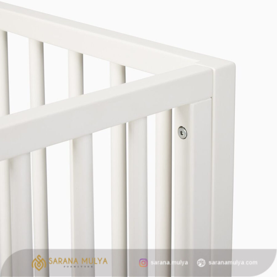 Agar buah hati dapat beristirahat dengan nyaman dan aman hadirkan Tempat Tidur Bayi Box Kayu Solid ini di hunian Anda. Memiliki desain minimalis modern yang akan memberikan aksen elegan dan juga mewah di kamar tidur si kecil. Terbuat dari material kayu mahoni berkualitas menjadikannya kuat, kokoh dan juga awet untuk penggunaan jangka panjang. Tempat tidur bayi ini menggunakan cat finishing berbahan water base yang ramah lingkungan dan aman bagi bayi. Selusur atau rail memiliki sistem buka-tutup untuk memudahkan Bunda saat menaruh si kecil di ranjang.