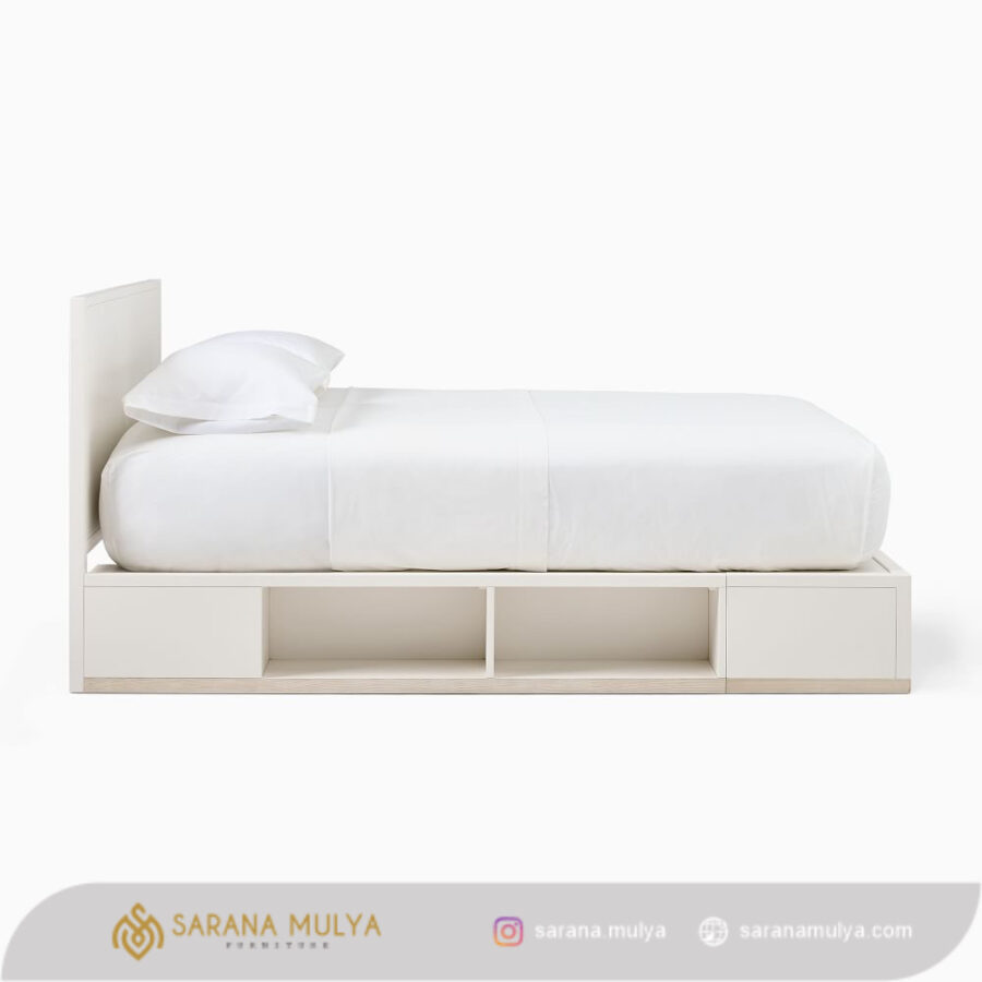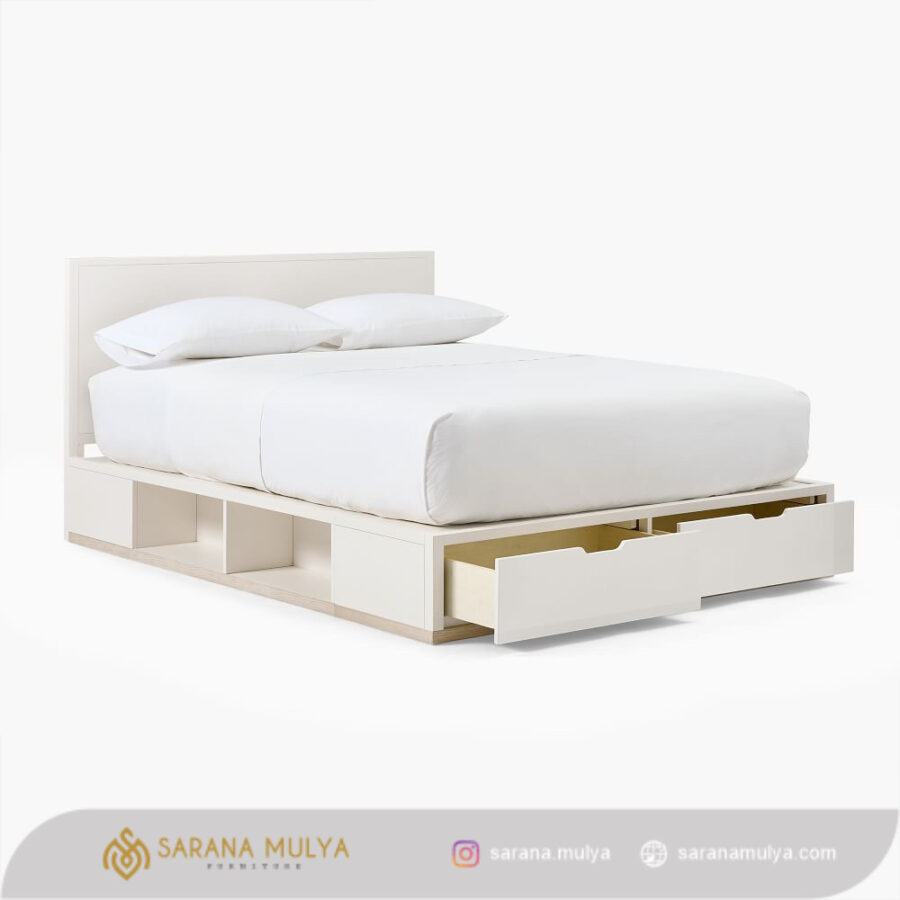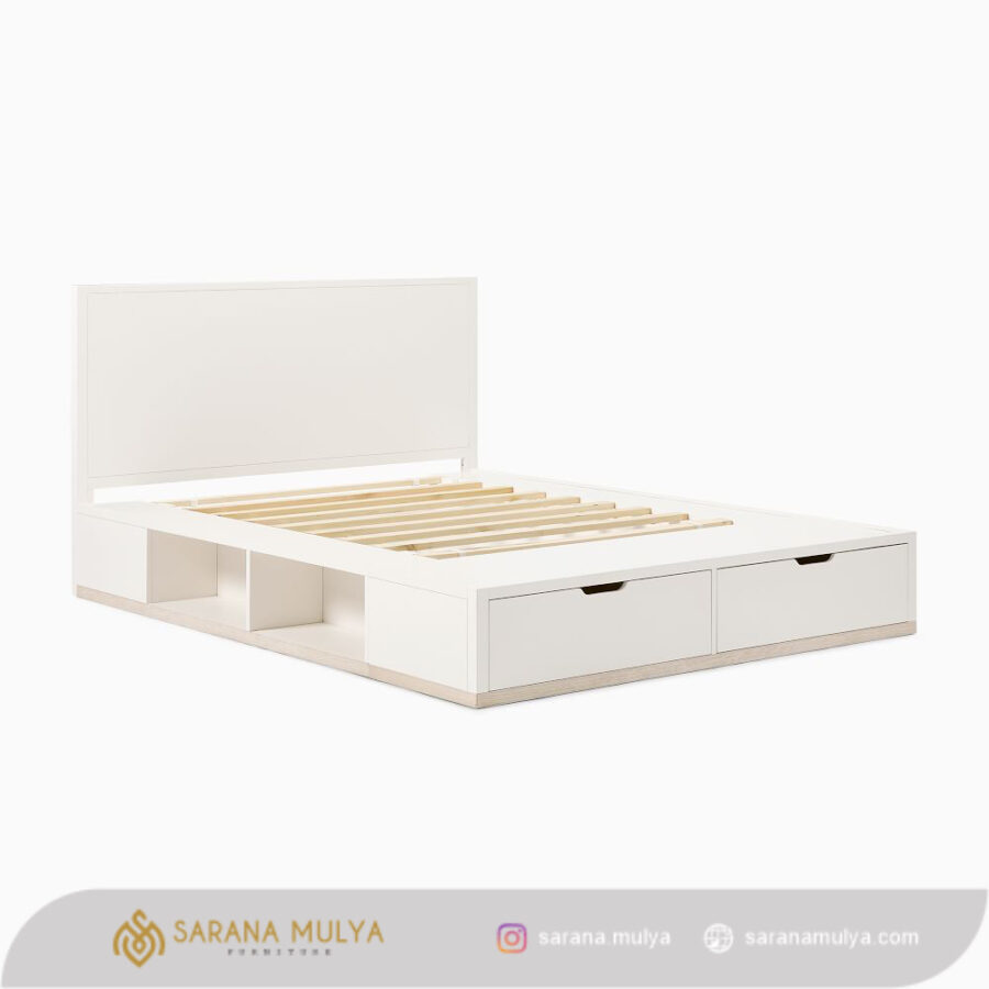 Spesifikasi Tempat Tidur Putih Laci Kayu Solid :