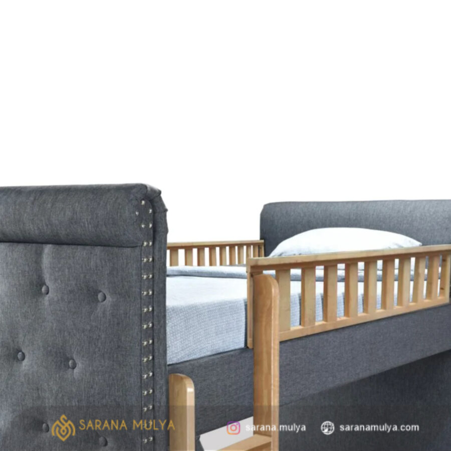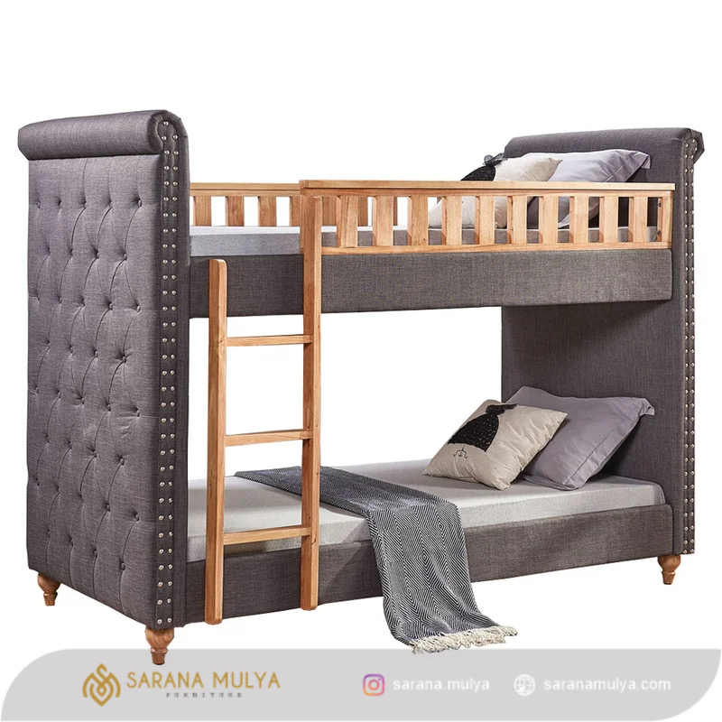 Buat waktu tidur anak bunda lebih nyaman dengan Tempat Tidur Tingkat Mewah Kayu Jati. Ini merupakan salah satu solusi ideal untuk hunian minimalis. Terdiri dari 2 tempat tidur tingkat dan sebuah tangga sehingga mampu menghemat penggunaan ruangan. Tempat Tidur Tingkat Mewah Kayu Jati ini terbuat dari material kayu jati solid kering sehingga kuat dan kokoh, dengan lapisan busa dibalut kain bludru yang tentunya tahan lama. Cocok untuk penggunaan di apartemen, asrama atau ruangan yang tidak terlalu besar. Dapatkan segala kebutuhan furnitur anak hanya di saranamulya.com
