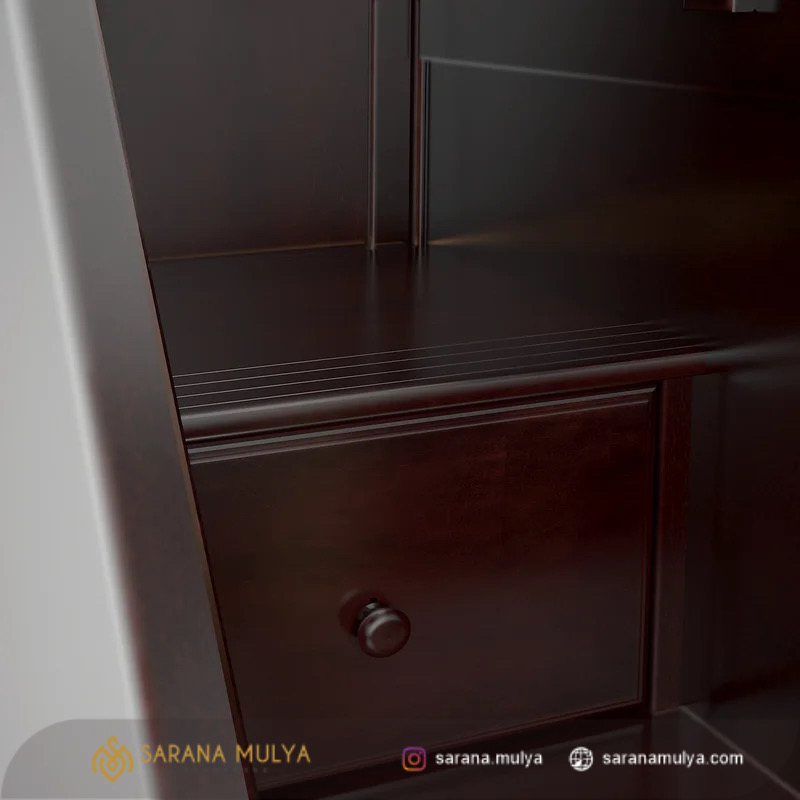 - Terdapat meja dan laci penyimpanan